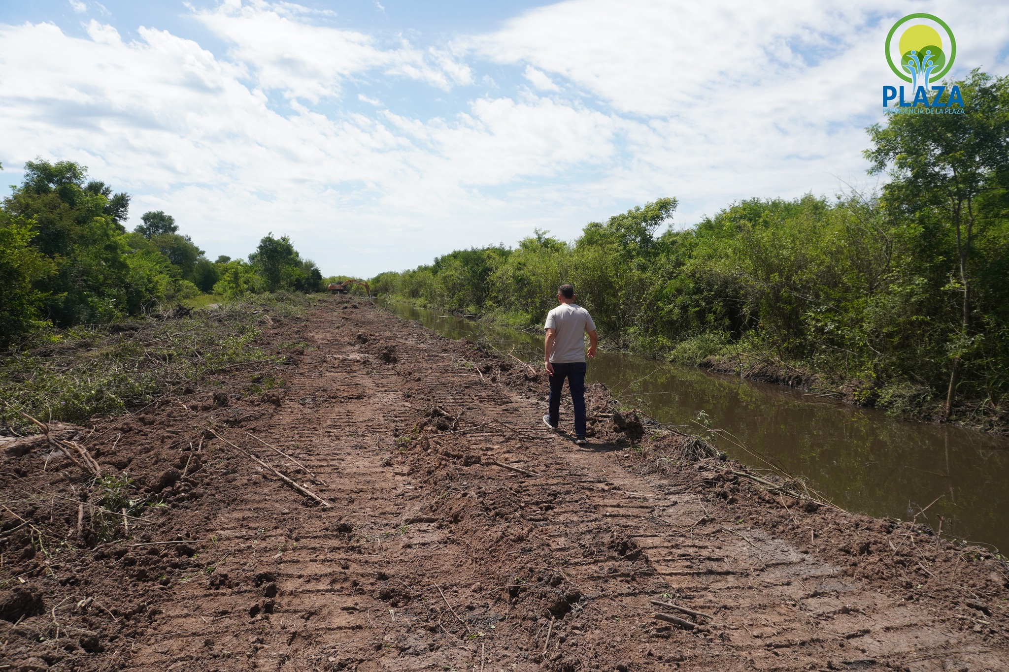 El intendente de Presidencia de la Plaza, Diego Bernachea, realizó una recorrida por la Zona Este para verificar el avance de las tareas de saneamiento que se están desarrollando en el canal aliviador del sector.
