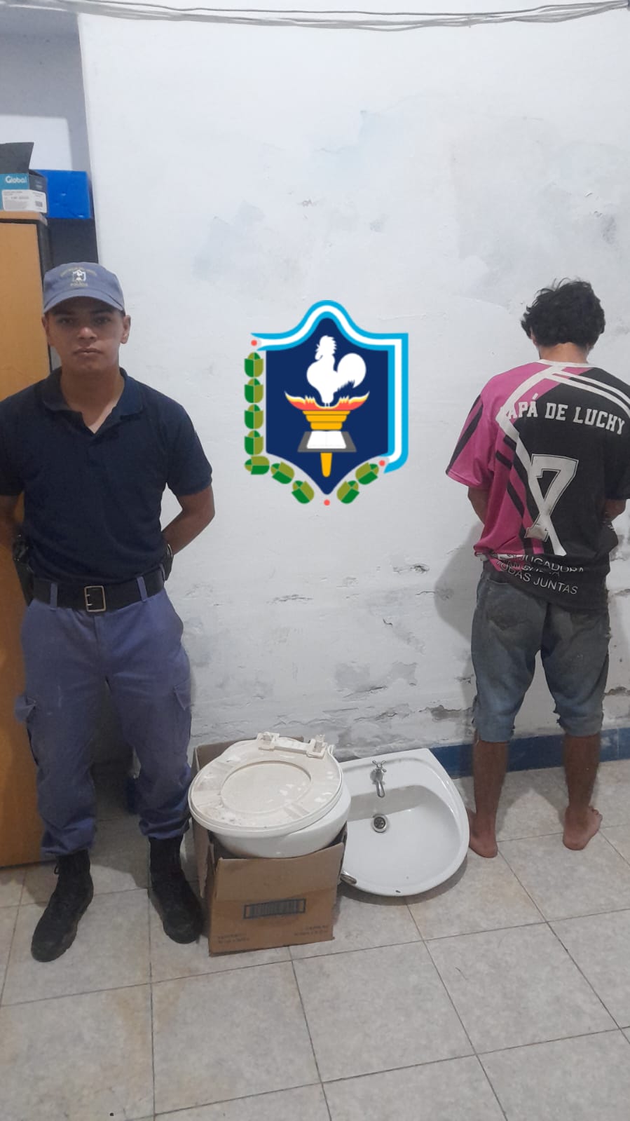 Durante el procedimiento se incautaron un inodoro blanco y un lavatorio del mismo color con griferÃa cromada, elementos que habÃan sido sustraÃdos del establecimiento. El hombre, de 29 años, fue aprehendido y notificado en una causa por supuesto robo.